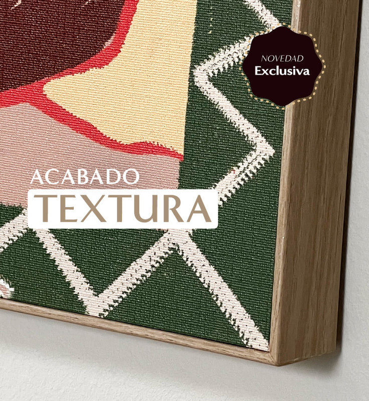 Puedes elegir el material y la enmarcación en cada obra. Tanto si seleccionas como material Lámina, Minimal, Century o Lienzo, podrás elegir una enmarcación en negro, blanco o madera. Si tienes cualquier duda con esto, no lo dudes, ¡pregúntanos!