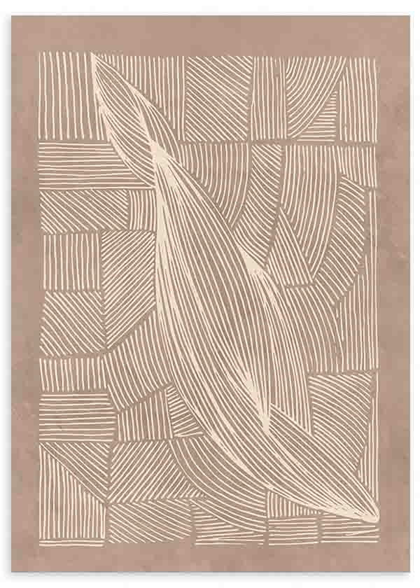 Abstraktes Gemälde mit unregelmäßigen Linien auf hellbraunem Hintergrund. Die weißen Linien bilden ineinandergreifende geometrische Muster und schaffen so eine optisch interessante und moderne Komposition. Vermittelt Gelassenheit und Eleganz. Perfekt für minimalistische oder moderne Umgebungen, lässt es sich gut mit neutralen und sanften Brauntönen kombinieren.