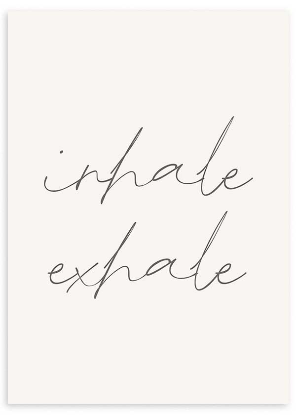 Bild mit Satz „Inhale Exhale“ mit Hintergrund Beige, nordischer Stil. Ein entspannendes Werk zum Aufhängen in jedem Raum des Hauses. Wählen Sie den Rahmen, der Ihnen am besten gefällt, und hängen Sie ihn direkt an Ihre Wände. Möchten Sie mehr Gemälde und Drucke wie dieses sehen? Weiteres finden Sie in unserer Sammlung von Gemälden mit Phrasen oder nordischen Gemälden .