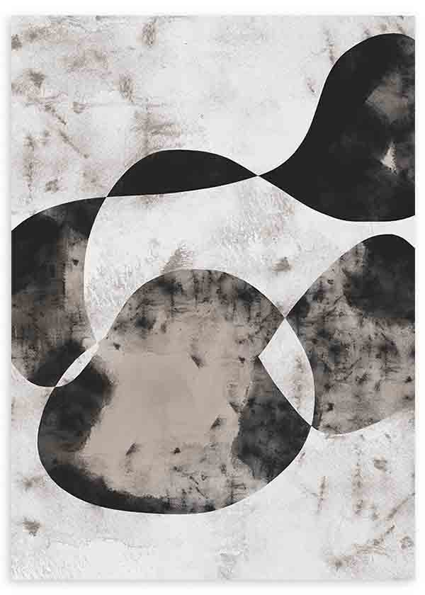 Cuadro abstracto con formas orgánicas en tonos beige, blanco y negro. kudeko.com