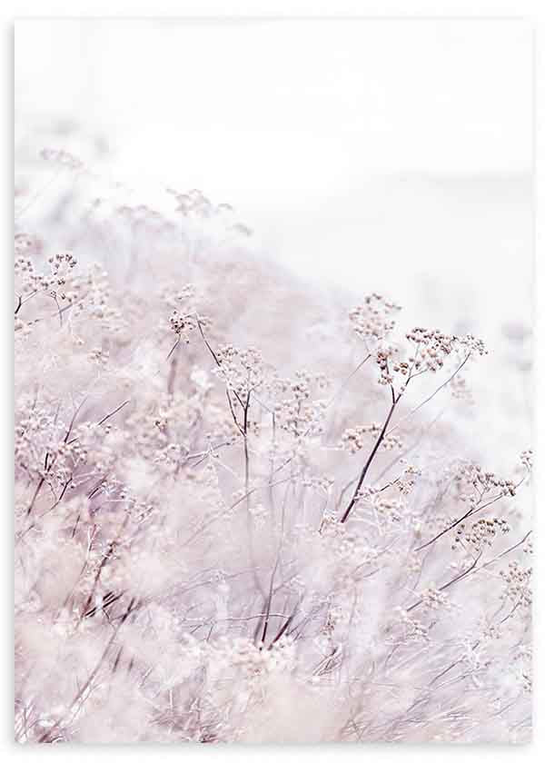 Cuadro minimalista con flores silvestres en tonos suaves sobre fondo blanco, ideal para decoraciones nórdicas. Disponible en kudeko.com.