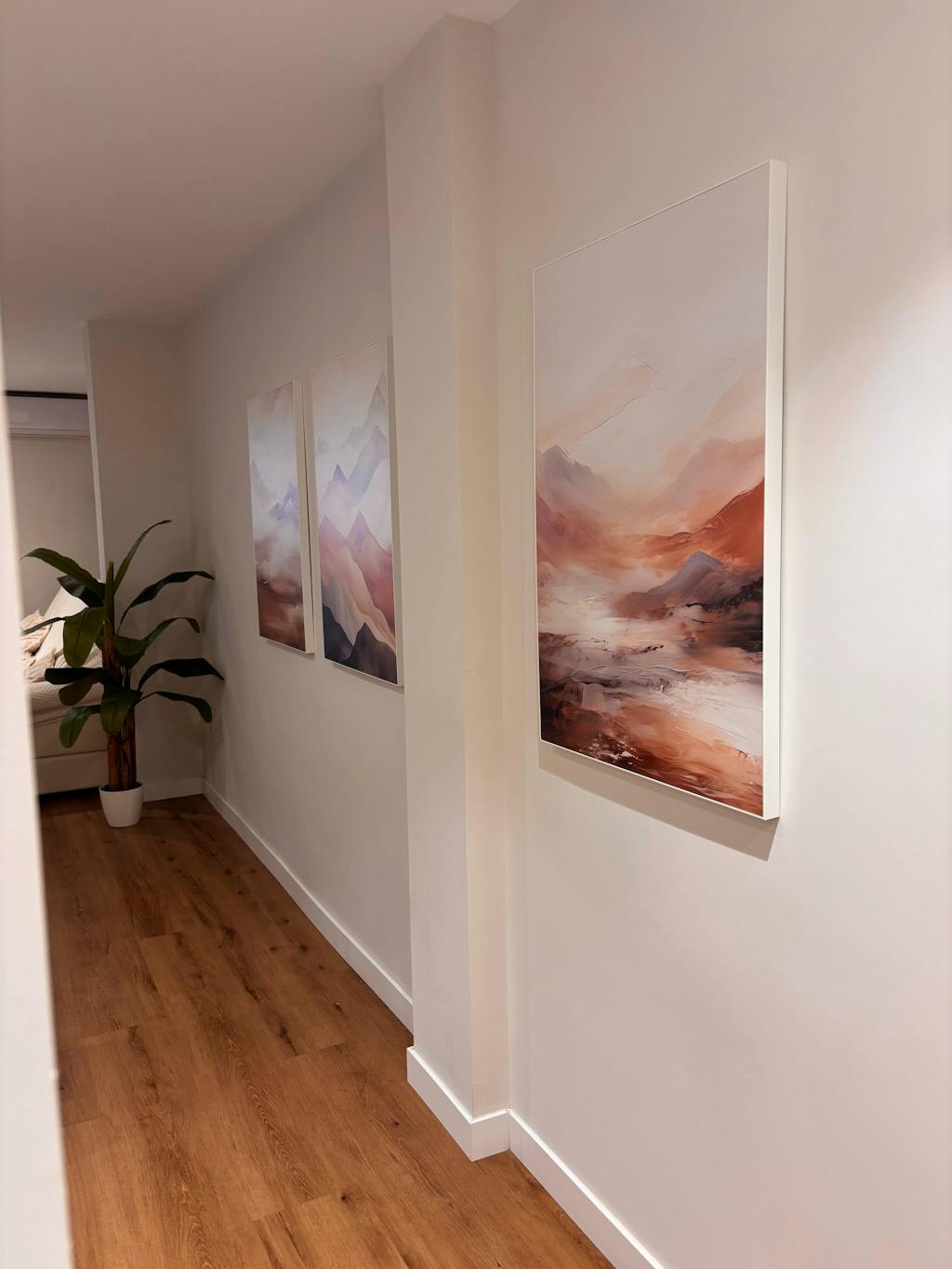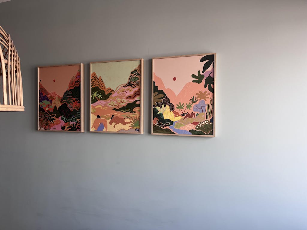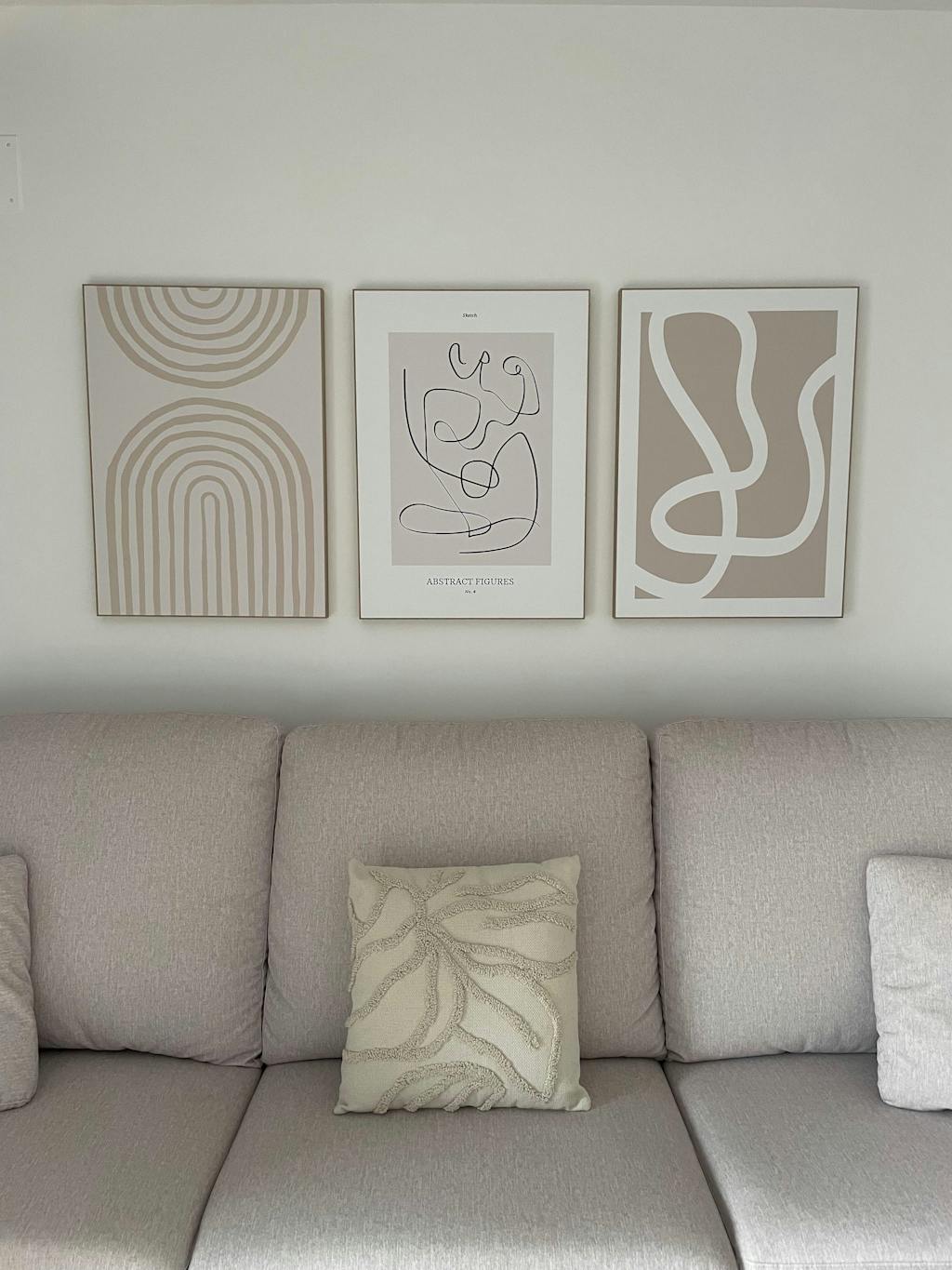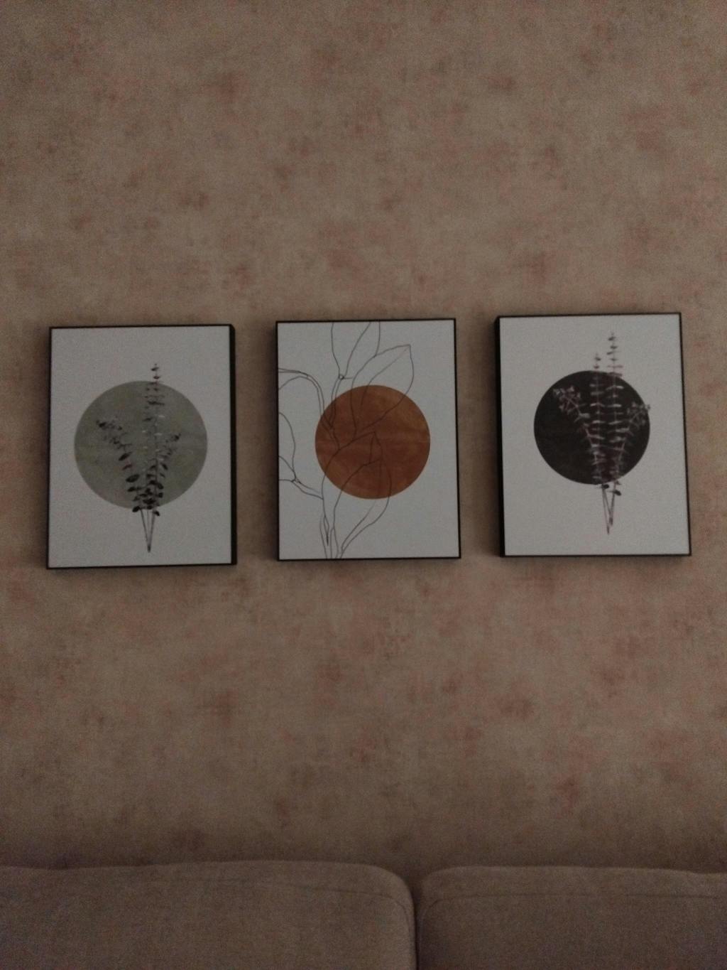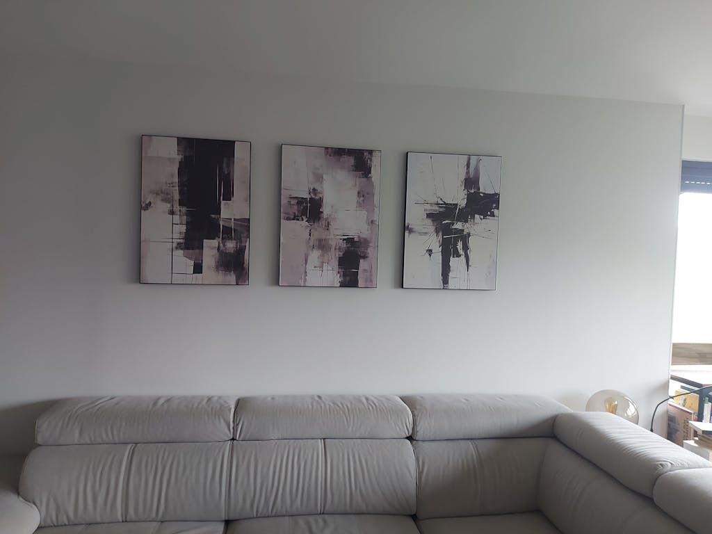 ejemplo 3 medidas cuadros para salón, encima de sofá