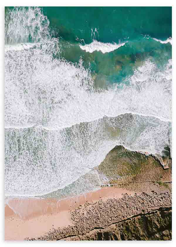 Fotografische Malerei von Strand und Meer, Luftaufnahme. Ein Werk, bei dem man fast die Meeresbrise spüren kann. Wählen Sie die Größe und den Rahmen, die am besten zu Ihren Wänden passen. Weitere Werke dieses Stils finden Sie in unserer Sammlung fotografischer Gemälde oder Landschafts- und Naturgemälde .
