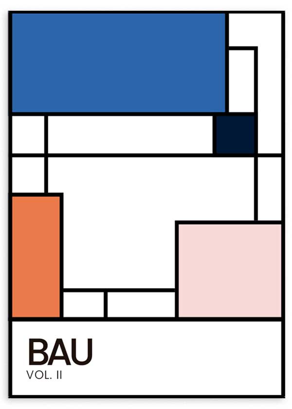 Tableau géométrique et coloré dans un style moderne. Combinez cette feuille décorative avec les autres de la collection BAU et vous remplirez vos murs d'un style géométrique. Mettez-y un cadre et accrochez des œuvres d'art ! Voulez-vous voir plus de peintures et de gravures comme celle-ci ? Vous pouvez en trouver plus dans notre collection de peintures géométriques .