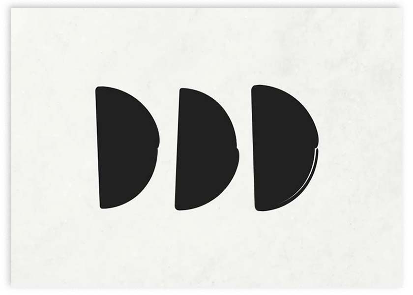 Cuadro horizontal minimalista en blanco y negro con 3 geometrías de semi-círculo. Simplicidad para espacios modernos, esta obra es perfecta para cualquier mural que combine cuadros monocromáticos en blanco y negro y minimalistas.