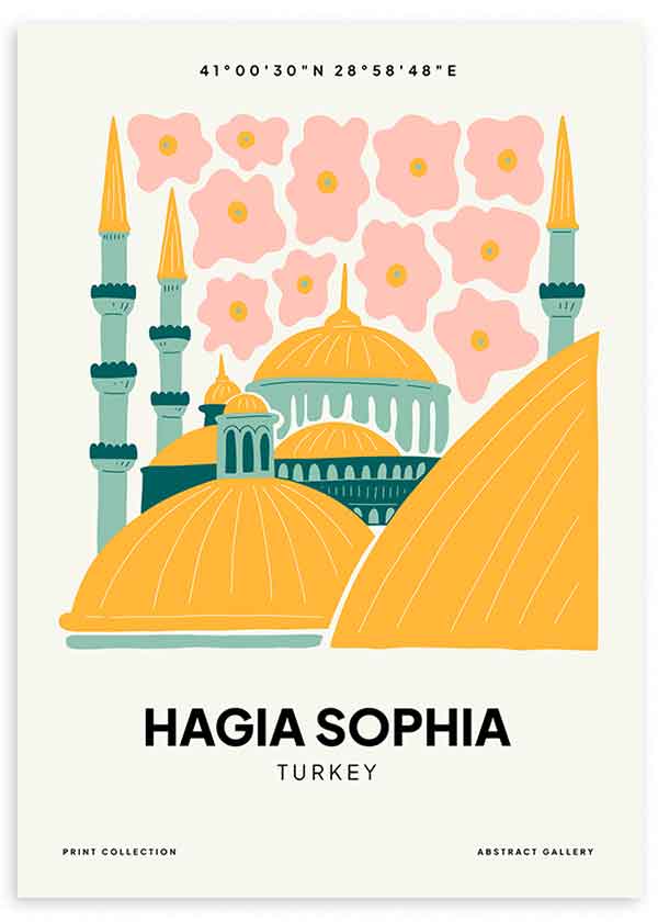 Peinture de Sainte-Sophie (Hagia Sophia) , illustration colorée. Une œuvre qui vous fera voyager à Istanbul (Turquie) pour voir la basilique la plus emblématique de la ville. Choisissez une taille et un encadrement pour accrocher cette œuvre dès votre retour à la maison. Voulez-vous voir plus de peintures et de gravures comme celle-ci ? Vous pouvez en trouver plus dans notre collection de peintures de villes et de cartes ou de peintures colorées .
