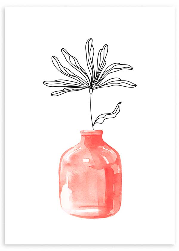 Tableau illustré de vase et de fleurs. Couleur de fond blanc et tons rosés . Idéal pour les chambres, les salons et les couloirs. Art et imagination ! Pour décorer vos murs avec des œuvres de ce style, jetez un œil à notre collection de tableaux de fleurs ou de tableaux d'illustration .