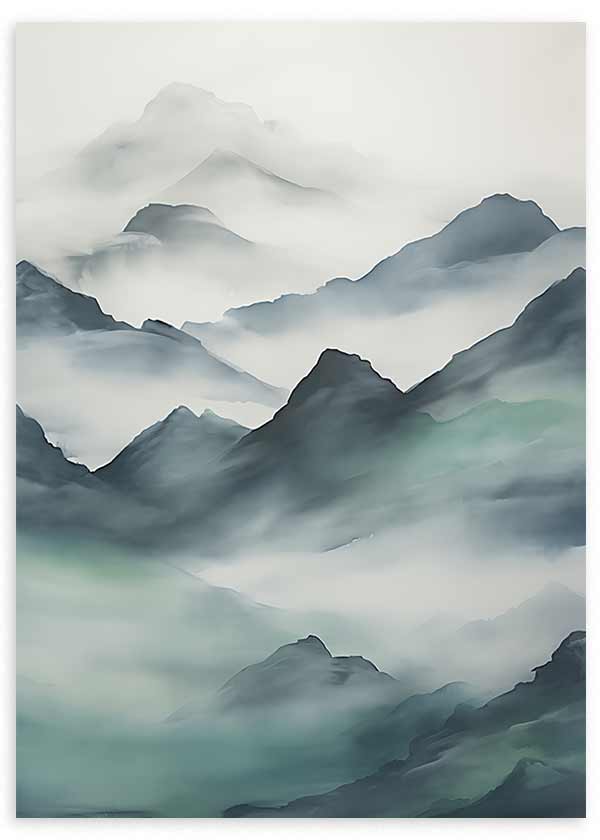 Peinture de style abstrait avec des montagnes dans des tons bleu verdâtre et gris. Une œuvre très élégante qui s’adapte aussi bien aux styles décoratifs modernes qu’aux intérieurs plus classiques. Vous pouvez choisir parmi nos cadres faits main pour l'accrocher directement sur vos murs. Pour voir plus d'œuvres de ce style, rendez-vous sur notre collection de peintures abstraites .