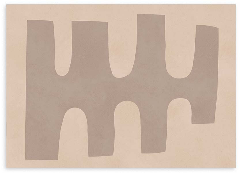 Motif géométrique horizontal représentant une grande forme organique dans des tons gris-beige sur fond crème. Son design doux et minimaliste apporte équilibre et sérénité visuelle. Il évoque le calme et une esthétique contemporaine très naturelle. Idéal pour les intérieurs de style nordique, japonais ou minimaliste, il se marie parfaitement avec le bois clair, les tons sable et les éléments décoratifs en fibres naturelles.