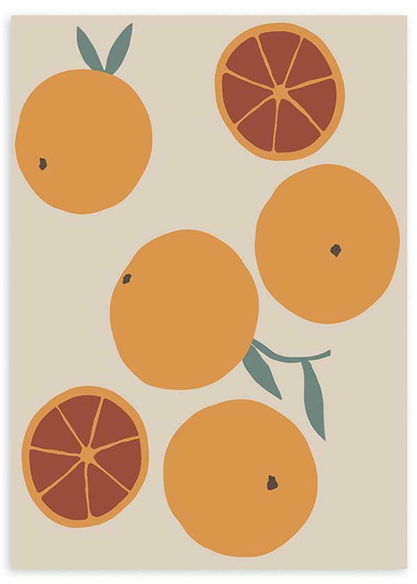 Cuadro de ilustración colorida para cocina. Una obra muy fresca con ilustraciones de naranjas y tonos anaranjados ideales para cualquier cocina. Si estás buscando cuadros para la cocina puedes ver más en nuestra categoría de cuadros para cocina.