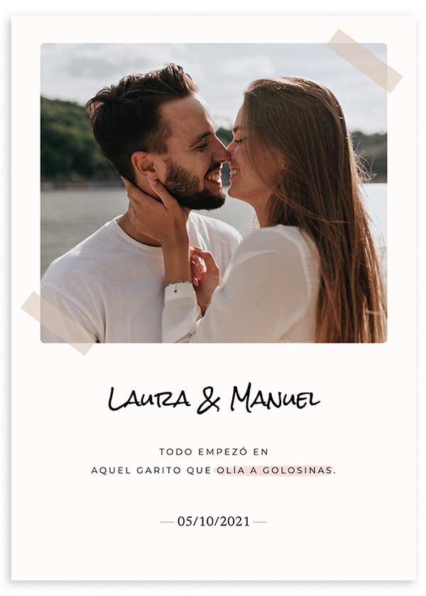 Cuadro personalizado con foto para pareja. En esta obra puedes personalizar los nombres, frase, una fecha y una foto. Procura enviar una foto de calidad, en formato cuadrado. Un cuadro ideal para regalar o simplemente para sumar a tu mural cargado de amor y colgarlo en el dormitorio. Elige material, color de marco y tamaño y decora tu hogar como se merece. ¿Quieres ver más cuadros personalizados? Échale un vistazo a todos en nuestra colección de cuadros personalizados.