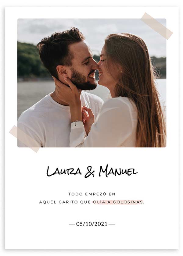 Cuadro personalizado con foto para pareja. En esta obra puedes personalizar los nombres, frase, una fecha y una foto. Procura enviar una foto de calidad, en formato cuadrado. Un cuadro ideal para regalar o simplemente para sumar a tu mural cargado de amor y colgarlo en el dormitorio. Elige material, color de marco y tamaño y decora tu hogar como se merece. ¿Quieres ver más cuadros personalizados? Échale un vistazo a todos en nuestra colección de cuadros personalizados.