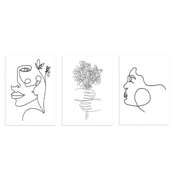 Conjunto de tres cuadros en blanco y negro, ilustraciones. Una combinación de cuadros hechos para convivir el uno con el otro. Elige una enmarcación y tamaño para ambos cuadros. ¡A decorar! Con estos conjuntos te resultará mucho más sencillo decorar, encuentra todos en nuestra categoría de conjuntos de cuadros. ¿Te has enamorado de este estilo? Mira obra como esta en nuestra categoría de cuadros en blanco y negro.
