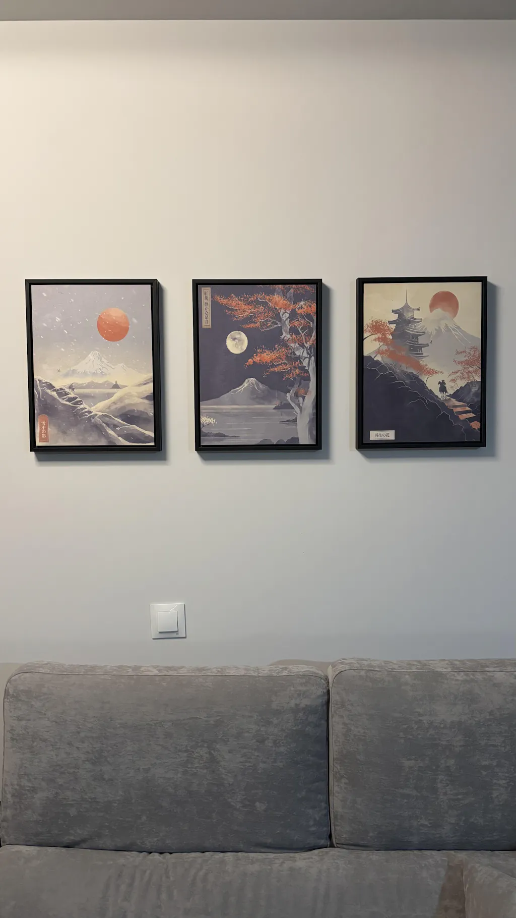 ejemplo 3 medidas cuadros para salón, encima de sofá