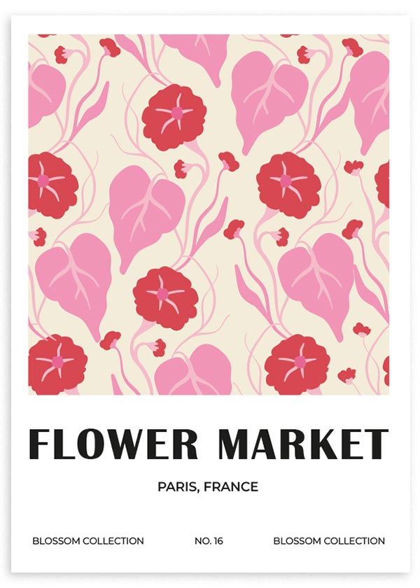 caixa ilustração de flor e primavera em diferentes tons de fundo vermelho, rosa e branco. A primavera está chegando com a nossa coleção Blossom, o sol entra pela janela e você tem que aproveitar :) Decore suas paredes com a nossa coleção primavera e faça suas paredes brilharem. Escolha um material e moldura. Decore com kudeko! Veja obras deste estilo decorativo em nossa categoria de pinturas de flores .