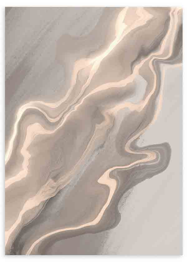 Pintura abstrata moderna com tons suaves de bege, cinza e creme, formando um desenho fluido que lembra ondas de mármore. A obra cria sensação de movimento e elegância, aliando harmonia e sofisticação. Ideal para espaços modernos ou minimalistas, salas ou quartos em tons neutros e naturais.