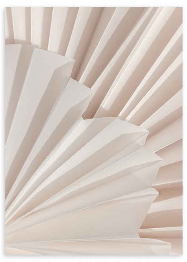 Quadro com um elegante desenho abstrato de dobras geométricas em tons de bege e branco. O seu jogo de luz e sombra cria um sofisticado efeito tridimensional, ideal para espaços modernos e minimalistas. Perfeito para salas, quartos e escritórios que procuram um toque de serenidade e estilo contemporâneo.