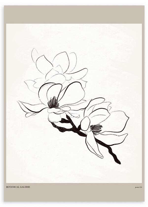 Caixa de ilustração artística de flor sobre fundo bege claro e margens bege escuro. Uma pintura de estilo nórdico que cai muito bem em ambientes neutros e claros. Escolha uma das nossas molduras artesanais para pendurá-la quando chegar em casa. Para preencher suas paredes com pinturas e gravuras decorativas desse estilo, você pode ver mais na categoria de ilustração de pinturas qualquer pinturas de flores .